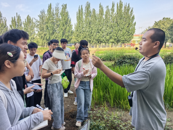 在河北中医药大学药用植物园内,一片充满生机的中草药种植区成为学生们的 “天然课堂”。这里整齐培育着数百种源自南北各地的中草药,从常见的金银花、薄荷,到北方干旱环境中扎根的黄芪、柴胡,丰富的品种为学生们提供了近距离接触药用植物的绝佳机会。学习过程中,学生们不再局限于书本上的文字描述,而是俯身观察、亲手触摸 —— 指尖轻拂不同药材的叶片,感受着有的光滑细腻、有的粗糙带刺;鼻尖凑近植株,分辨着薄荷的清凉、当归的浓郁,在触觉与嗅觉的双重感知中,沉浸式体验药材的“鲜活”状态。更重要的是,大家围绕“真伪品种鉴别”展开细致探究,通过对比叶片形状、叶脉纹路、花朵形态等特征,系统归纳出正品与伪品在植物形态上的细微差异。这种基于原植物的鉴别能力,将成为他们未来从事中药采购、质量检测与鉴定工作的重要基础,为专业成长筑牢根基。
