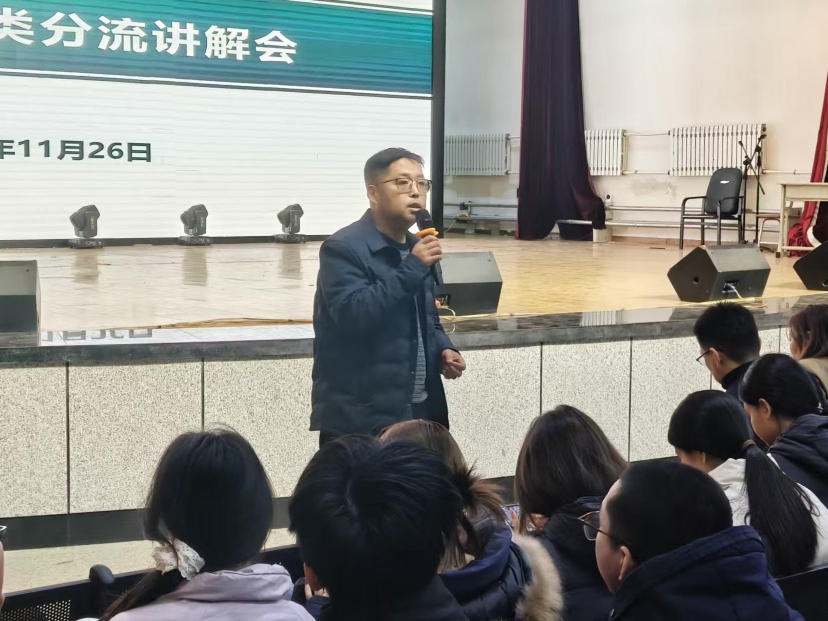 杨柳副书记解读了分流政策和专业班级设置,结合学院学生的学业发展和中药行业就业现状,强调专业选择是人生发展的关键节点,希望同学们立足长远发展,结合自身学业基础、兴趣特长及职业规划,主动与家人充分沟通协商,审慎作出科学合理的专业选择。