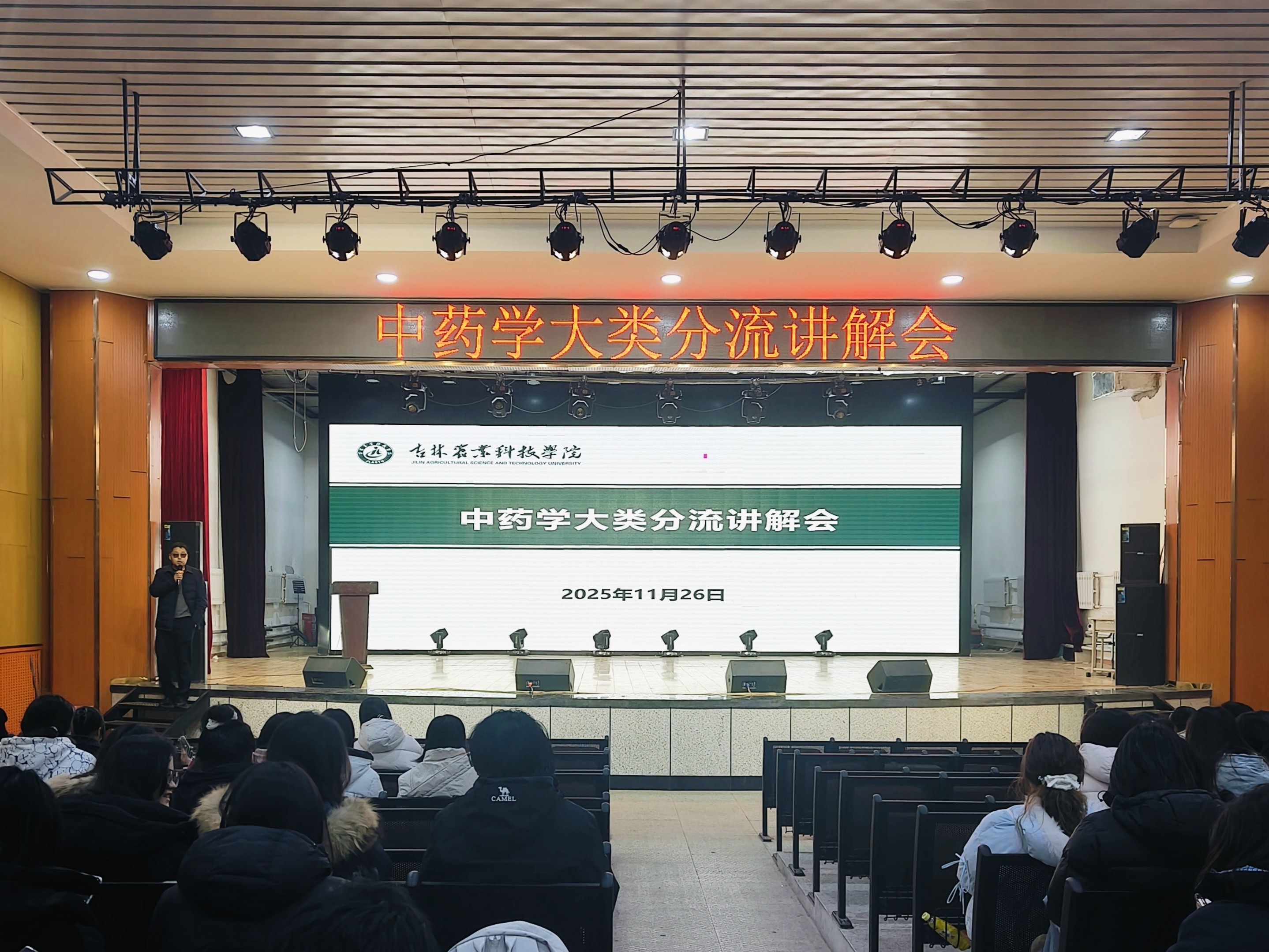 为帮助同学们明晰各专业培养定位与课程体系特色,科学指导学生选择分流专业,11月26日12:30,中药学院在左家校区大学生活动中心召开中药学大类分流讲解会。会议由学院党总支副书记杨柳主持,中药学院2024级、2025级中药学类专业学生参加本次大会。