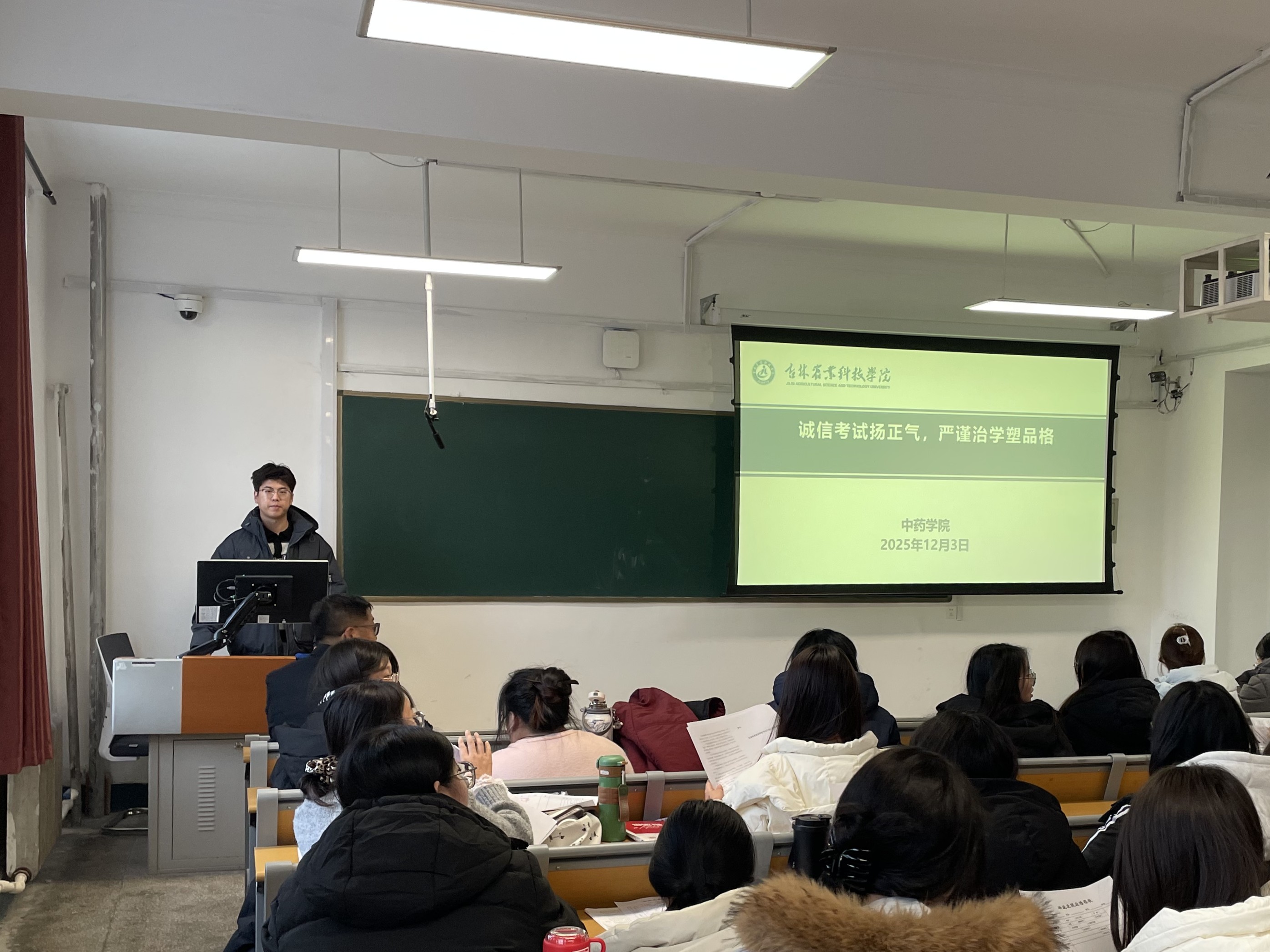 临近期末,为进一步强化学生行为规范意识,夯实学业根基,中药学院近日召开2025-2026学年第一学期期末主题年级大会,全体学生参会。会议由各年级辅导员分别主持。