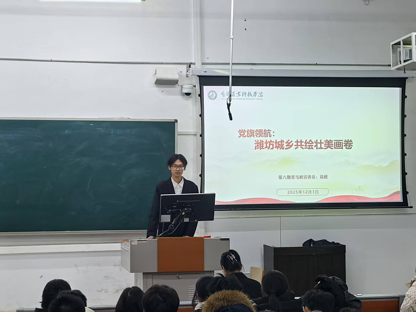会上,5位青马学员紧扣不同核心主题,结合自身经历与感悟,以家乡故事为载体、以青春视角传精神,为现场学子带来一场兼具理论基础与情感温度的交流。真挚话语搭配鲜活事例,让青年心中深植红色基因,让青年肩头扛起时代担当。
